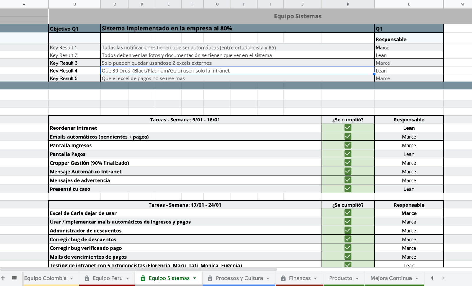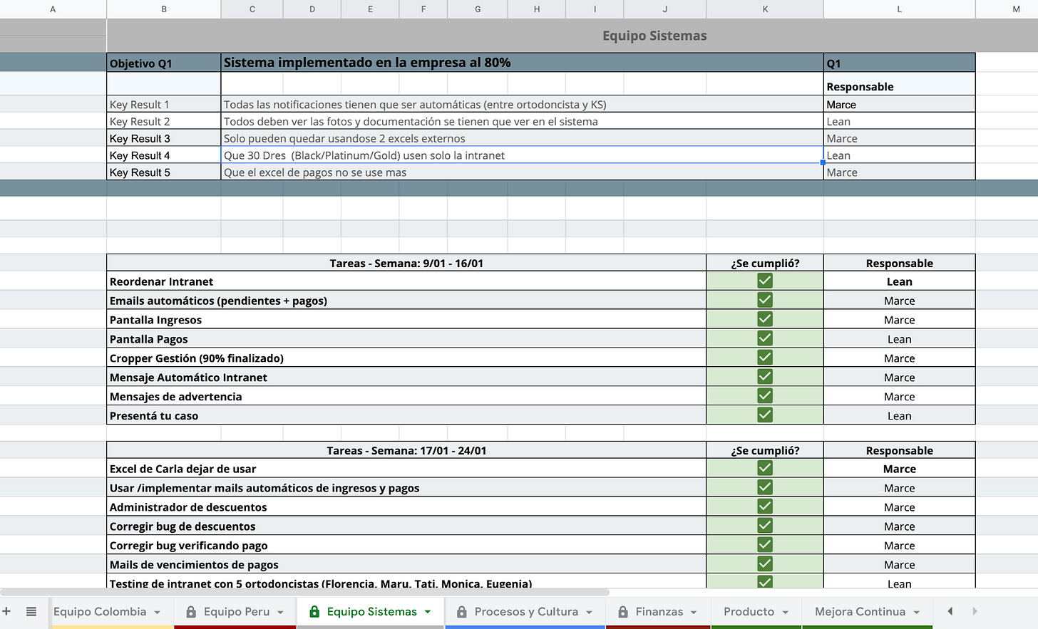 Por último es muy importante que cada KR tenga un responsable. El equipo responsable se adueña de ese KR para todo el año.